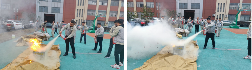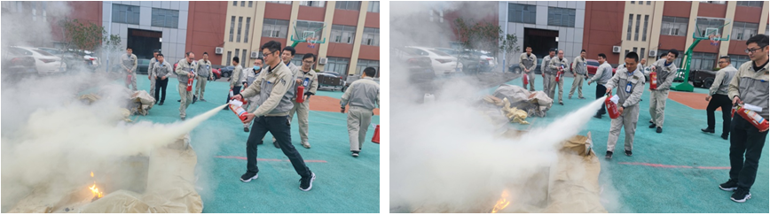 有了理论知识,也提高了消防宁静意识,又明白了宁静生产大于天,那接下来就是宁静实践、消防演练环节。在操场上,模拟了一个火灾现场,熊熊烈火、滔滔浓烟,在烟雾弥漫中让每一位加入培训的员工都亲身体验了一次灭火的历程,从提灌、拔栓到喷射,一气呵成,不但学到了知识,也知道该如何正确操作灭火器,更亲身感受到了火灾的危害。