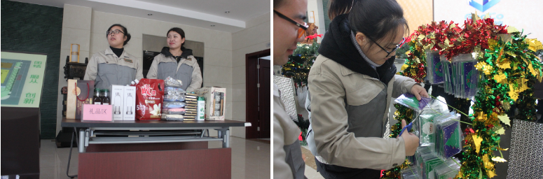 整个运动现场全程的为各人播放有关的圣诞歌曲,陪衬了现在气氛,最热闹、激感人心的是抽奖环节,每个奖品都写在贺卡里,贺卡里有实物奖和新年祝福语!
